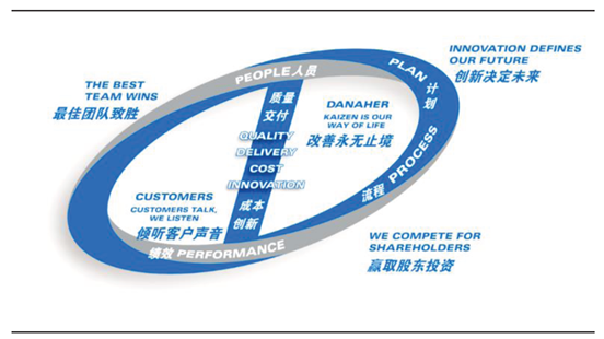 丹纳赫DBS是丰田精益管理TPS的升级版,将局限于生产运营的丰田方式扩大到企业整体业务成长与管理可持续方面。1980年,由丹纳赫原执行副总裁Art Byrne先生学习丰田的持续改善思想内化而成DBS,但在2001年,在精益生产的基础上增加了成长性;又于2009年,增加了领导力部分,形成了目前领导力、成长性、精益生产三者并重的完整DBS系统。丹纳赫以企业logo展示了DBS的五个核心: