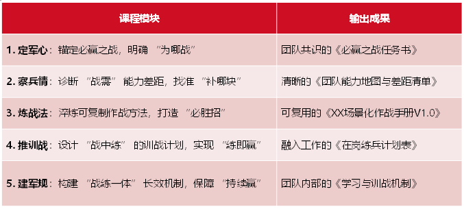 | 采购管理 | 销售营销 | 研发管理 | 中层干部 | TTT培训 | |